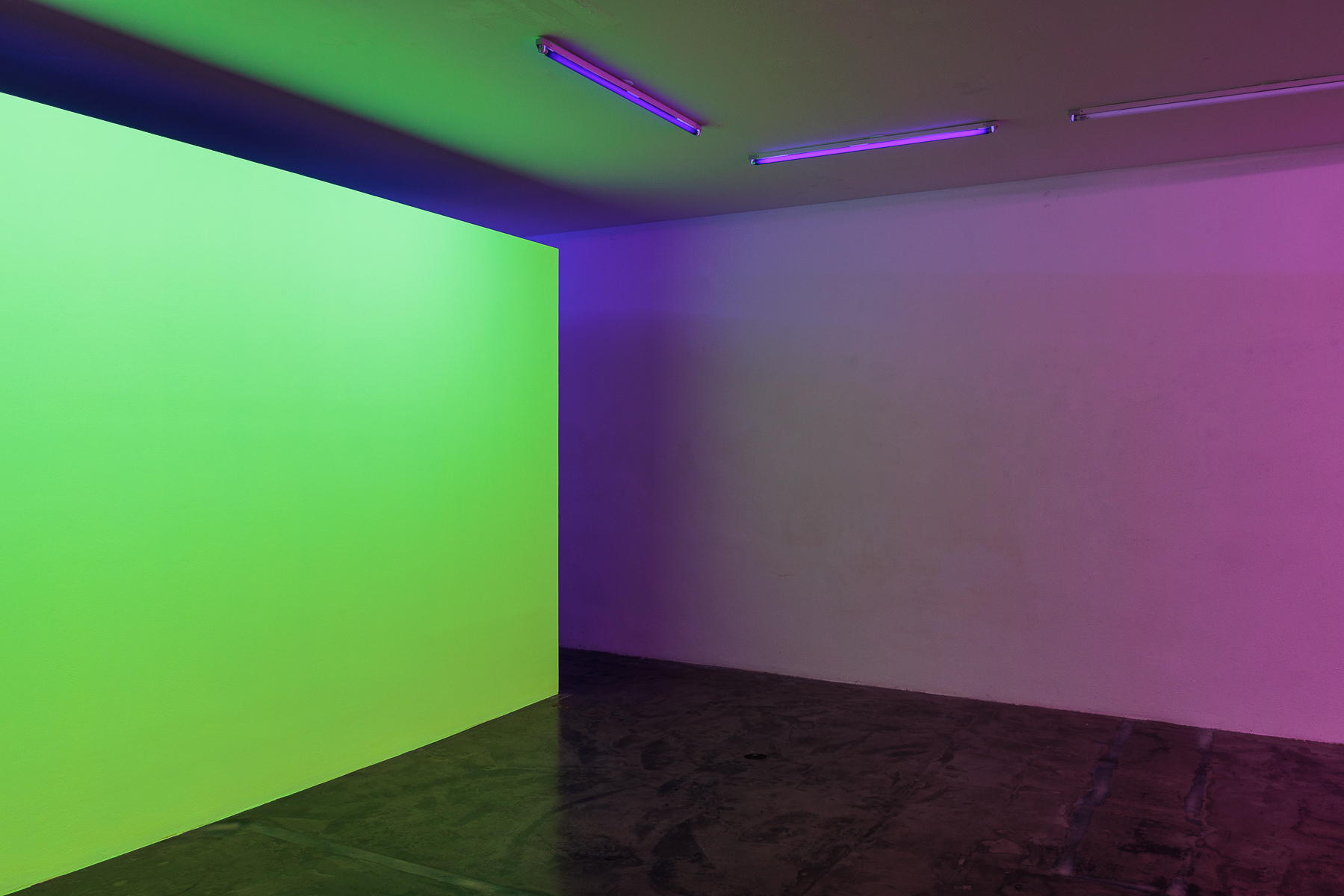 Zora Kreuzer, Energizer, 2023, Acryl auf Wand, UV-Leuchtstoffröhren, Sehsaal, Wien(AT) © Zora Kreuzer & VG Bild-Kunst Bonn, 2024; Foto: ©kunst.dokumentation.com / Manuel Carreon Lopez